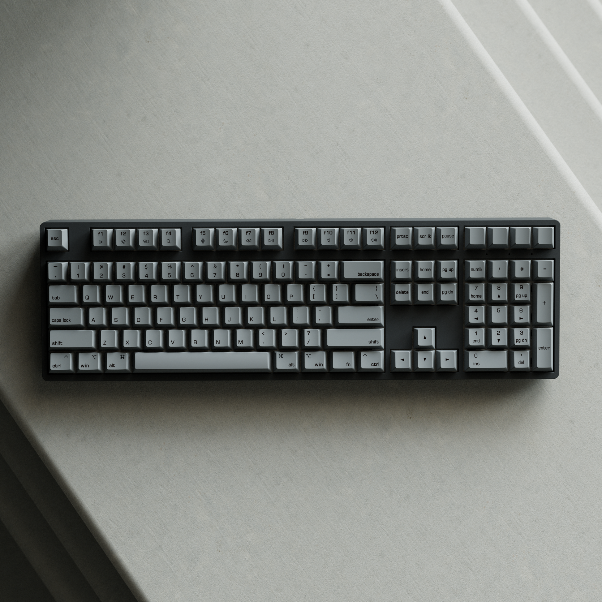 -ANSI 100% layout (108 keys) including numeric and function areas, suitable for a wide range of input requirements