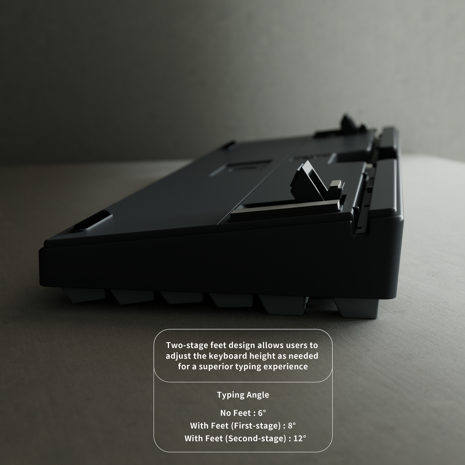 Two-stage feet design allow usersto adjust the keyboard height as needed.