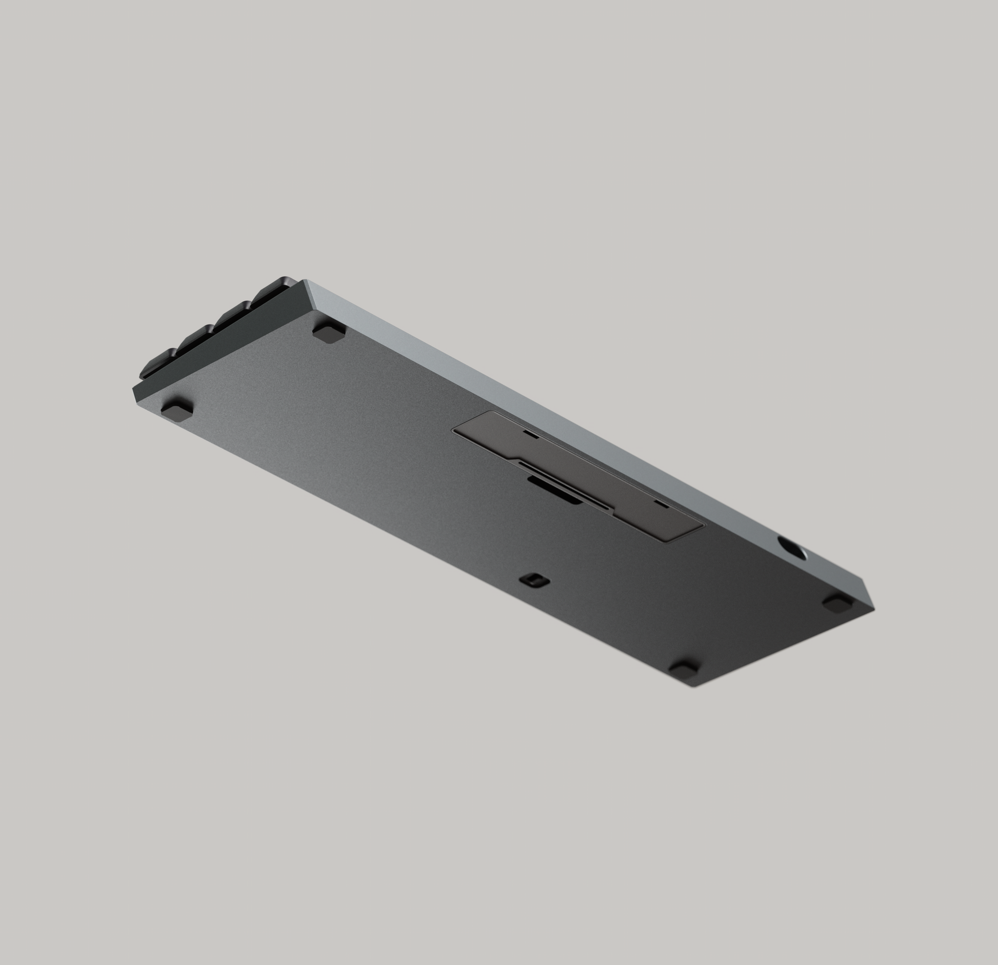 CNC-machined aluminum bottom case with a sleek low-profile design, featuring a comfortable 5-degree typing angle and a convenient Type-C port.