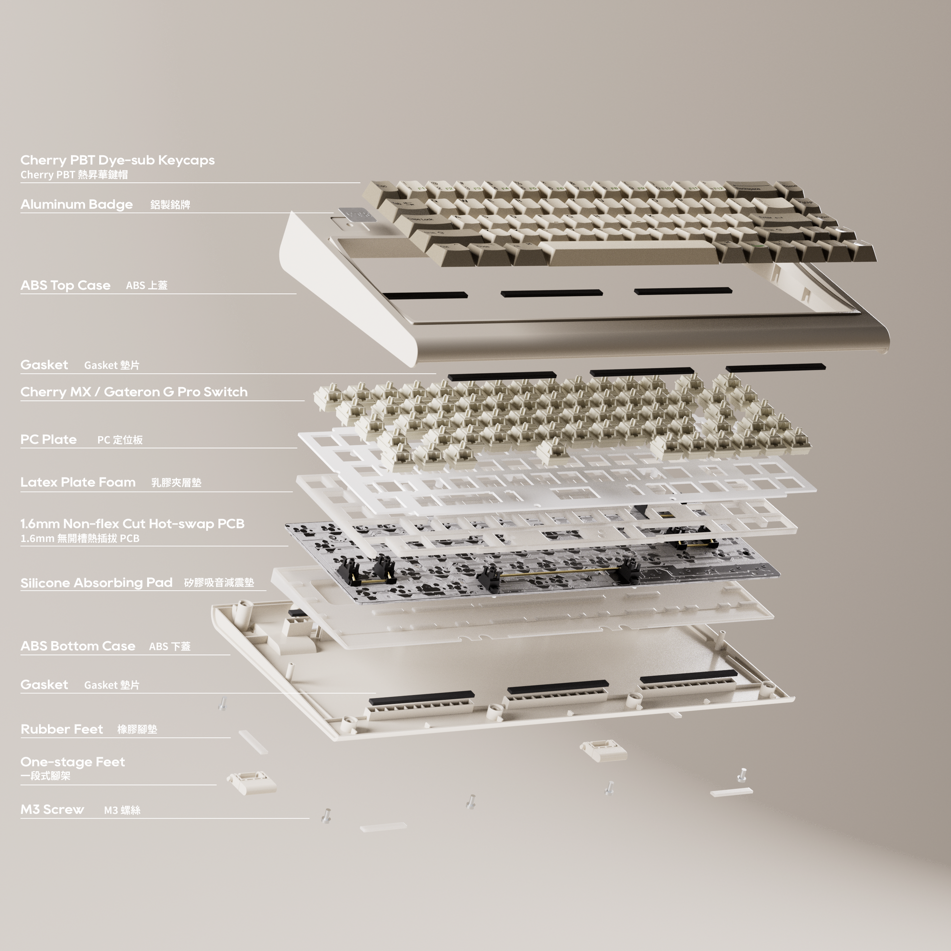 65% layout with retro inspired case design, a family member of our Model M series. Supports wireless functions, programing through VIA, hot swap, mechanical switches, PBT cherry profile keycaps.