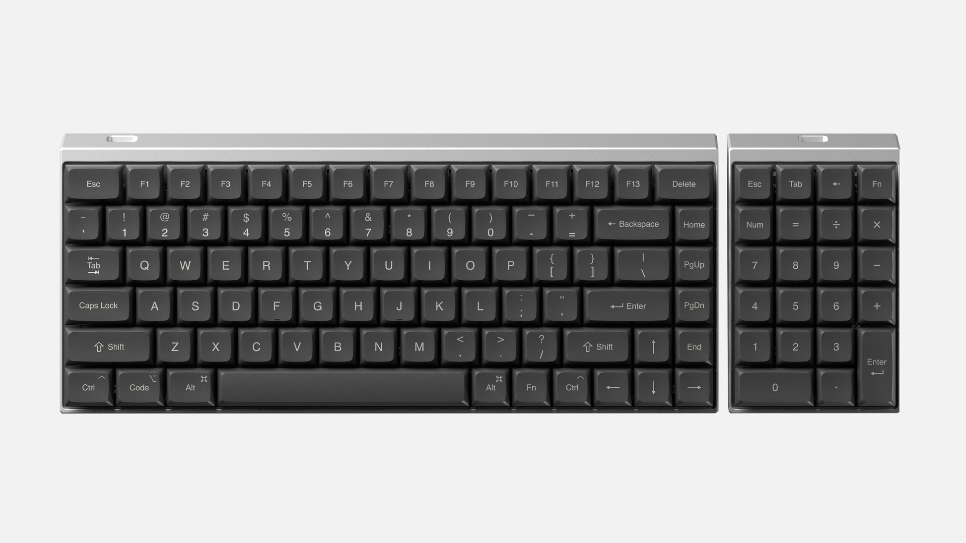 Low profile true wireless split keyboard, 75%+separate numpad.