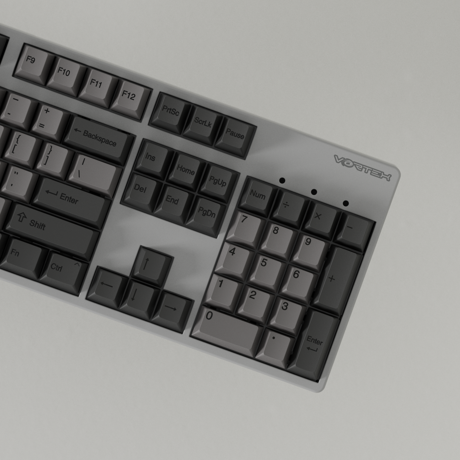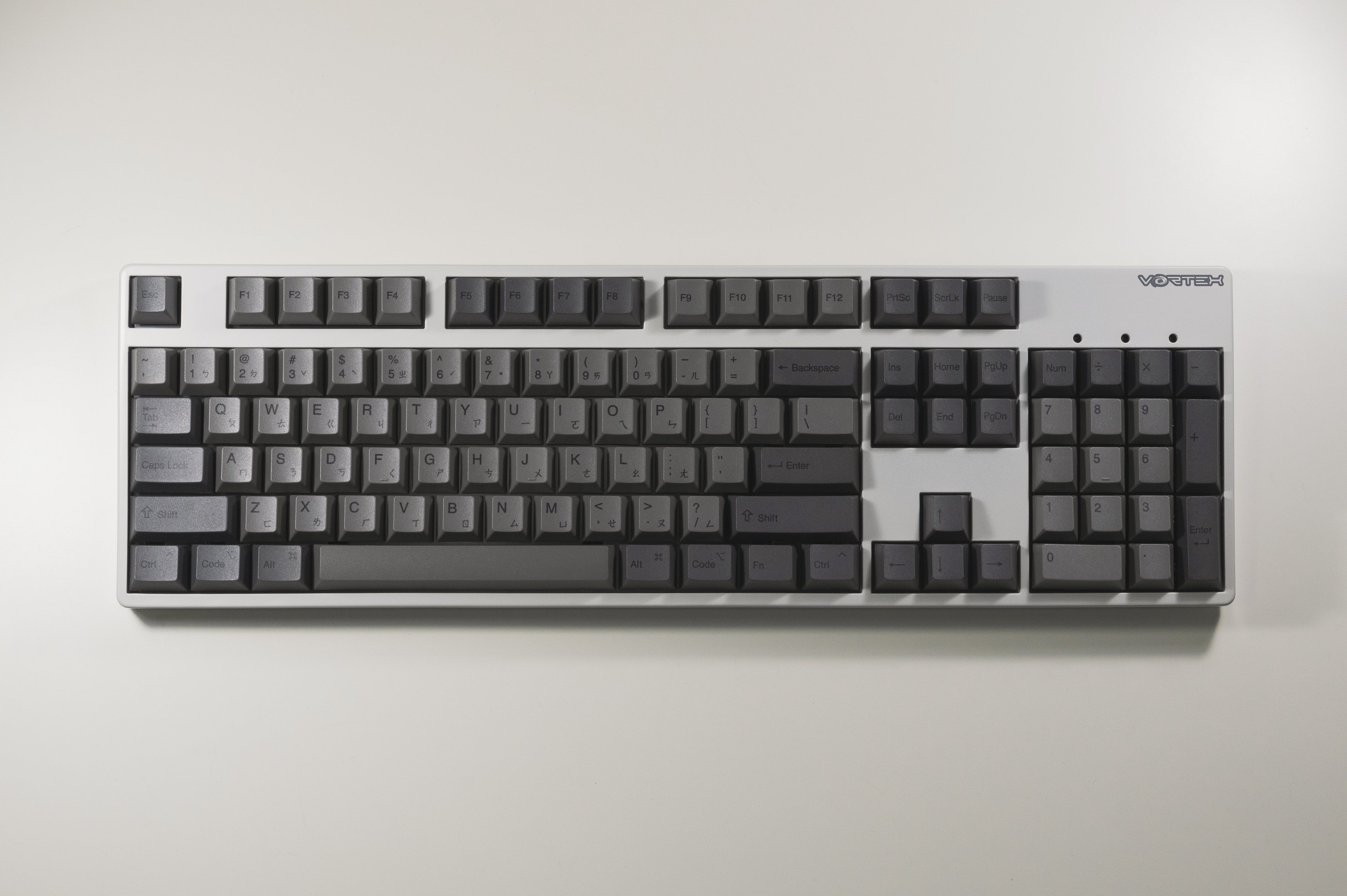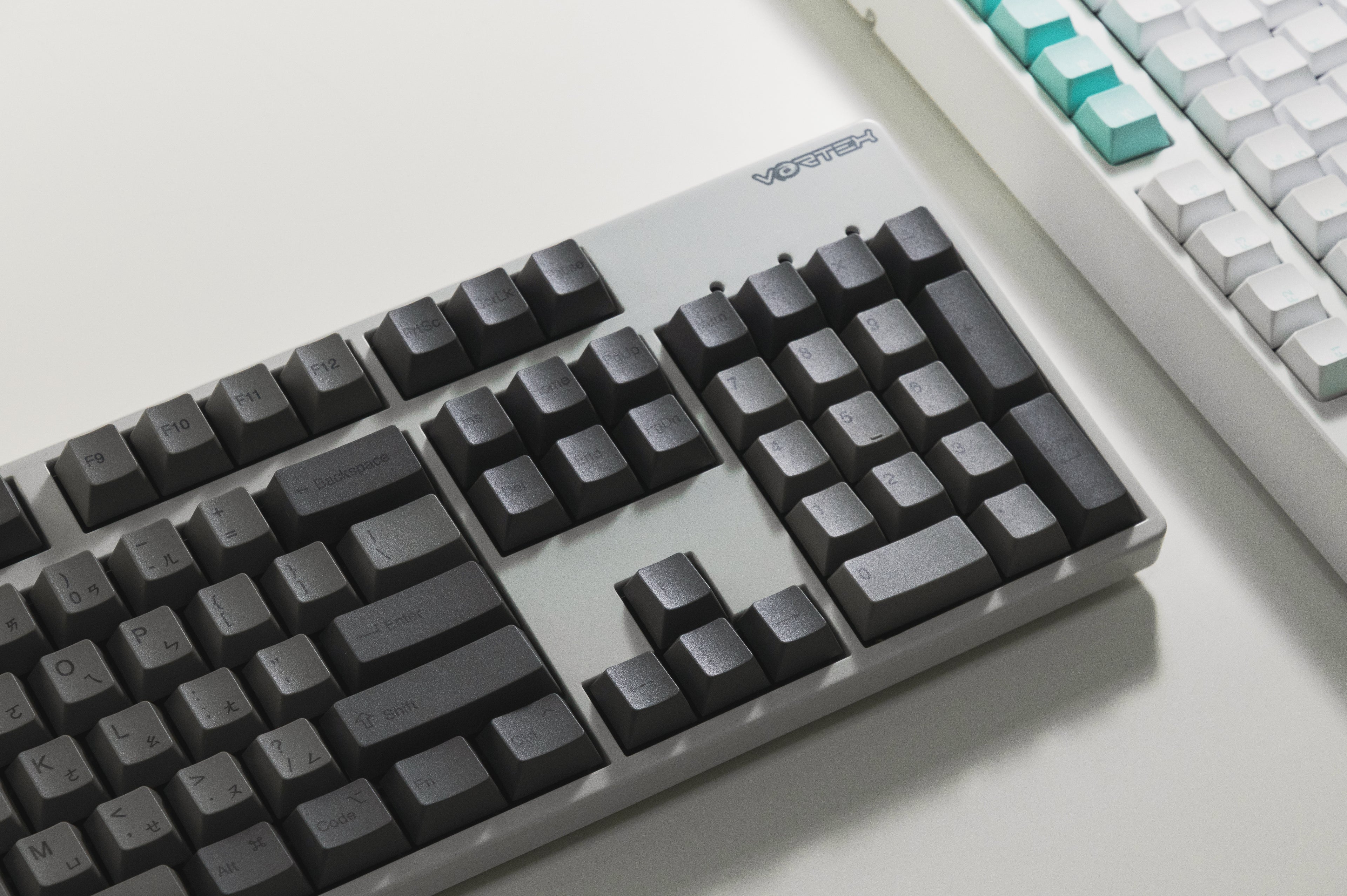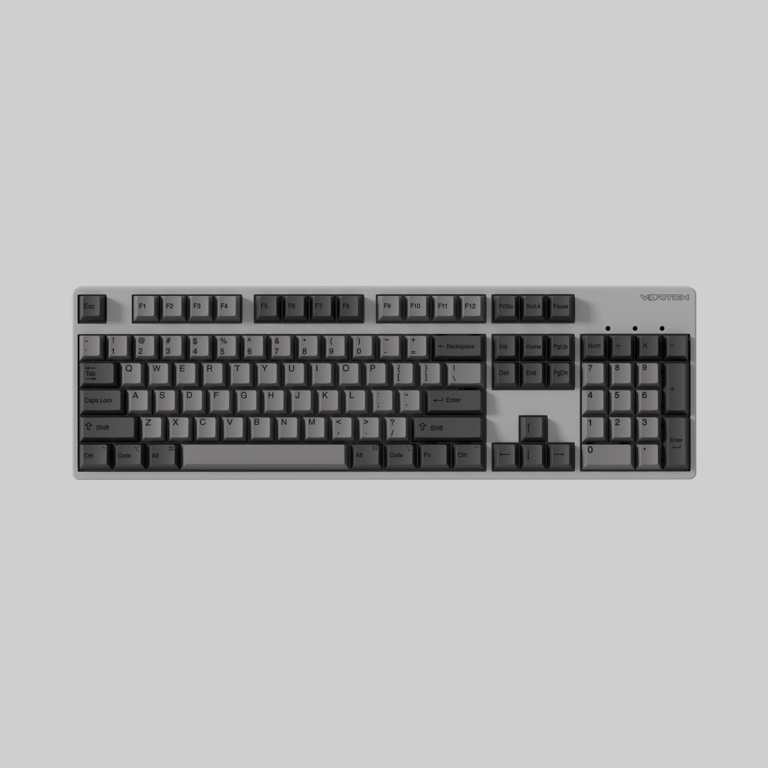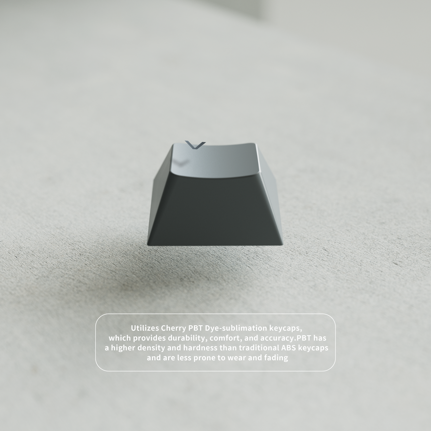 Grey PBT dye-sub cherry profile keycaps. Matching color with the keyboard case.