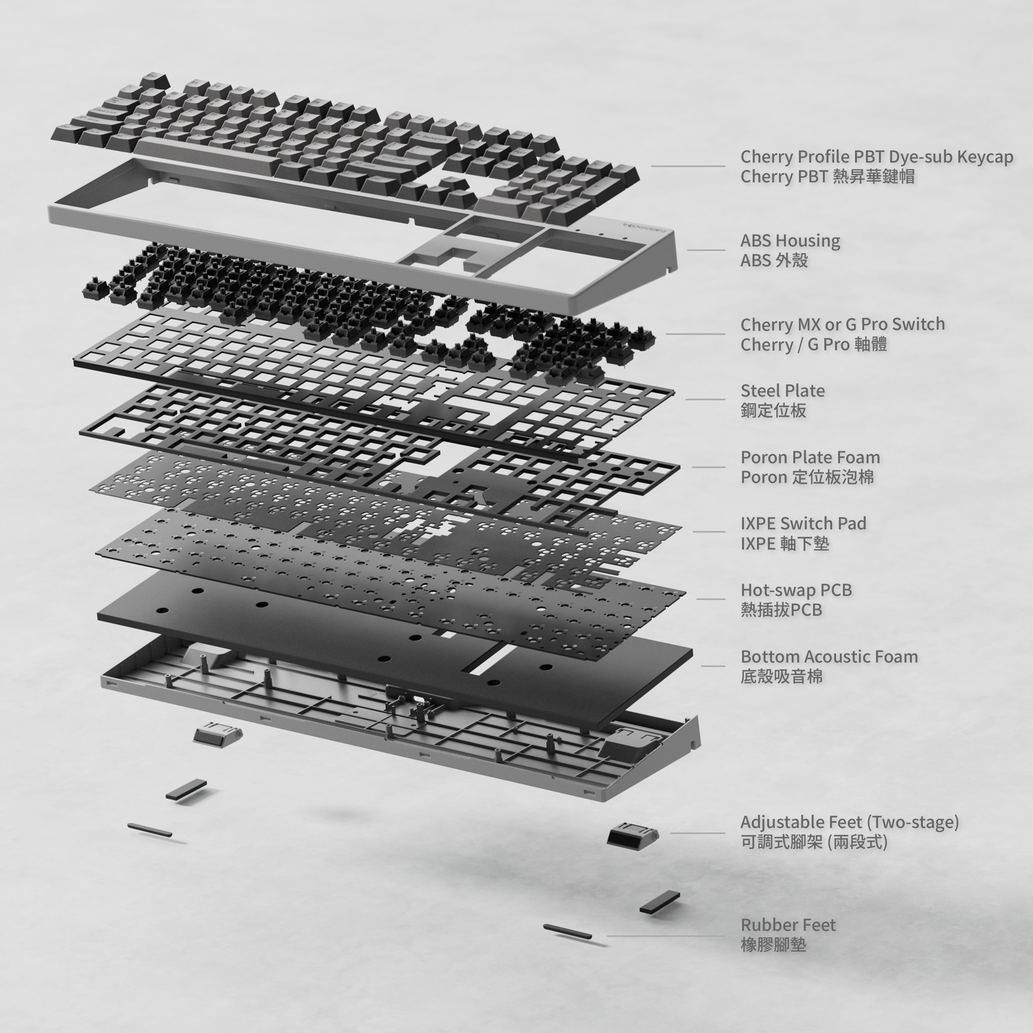 Comes with an Ixpe switch pad, poron plate foam, and bottom case sound-absorbing foam, diminishing hollow sounds for a more substantial typing feel